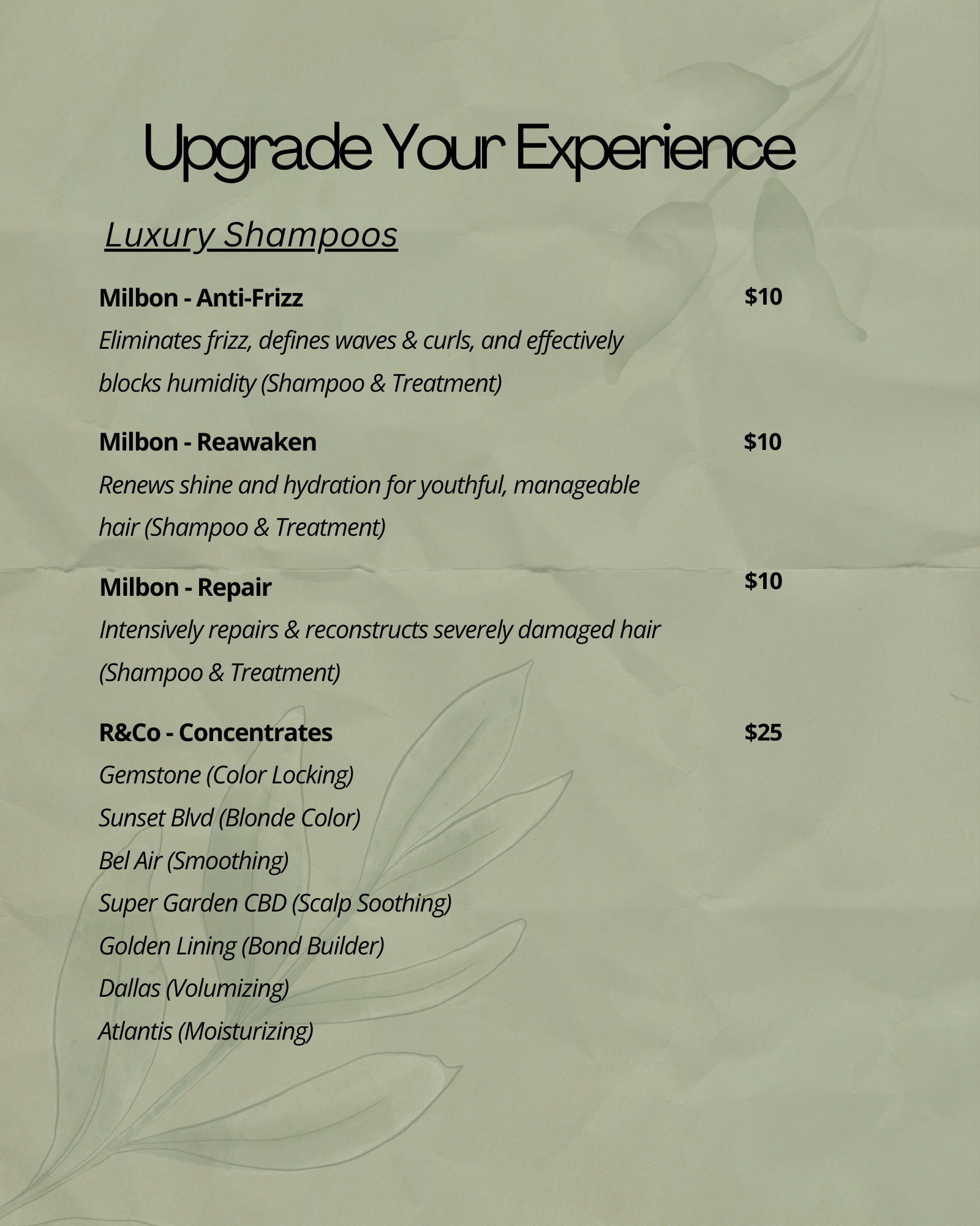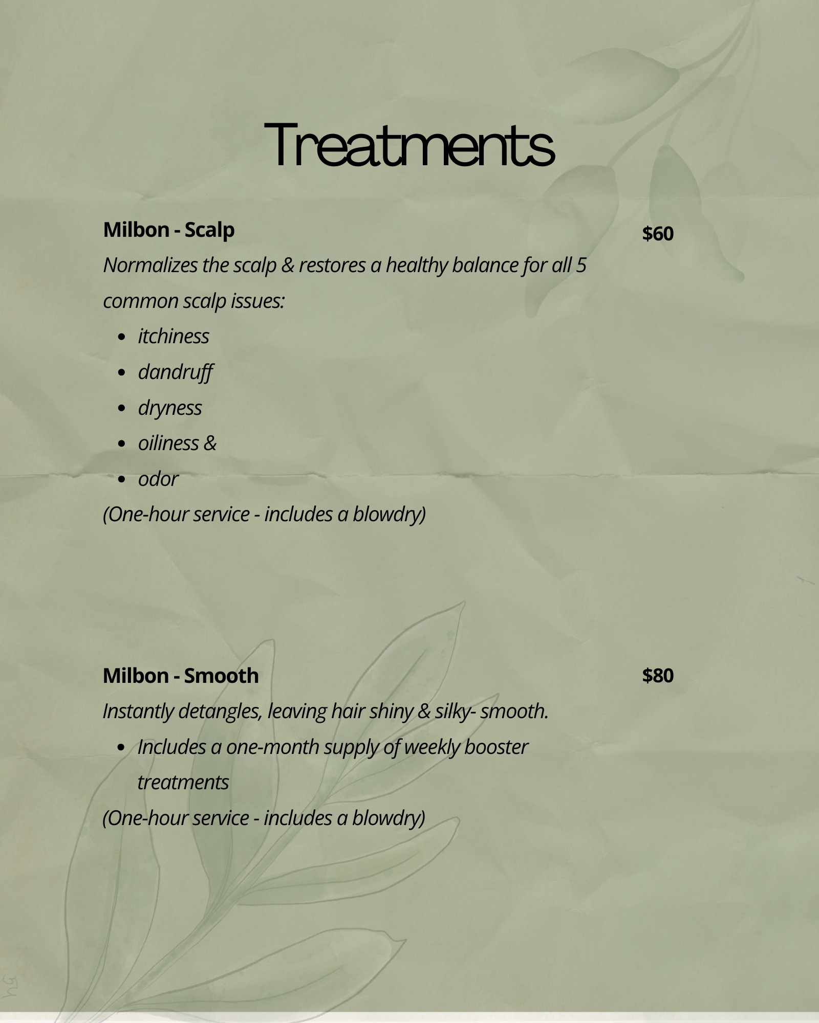 Prices subject to change due to hair length, density and service time. Price differentiation determined during consultation.*